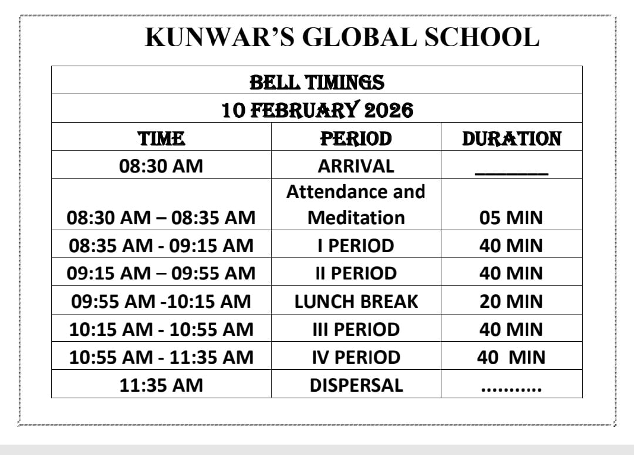 Bell Timings for 10th february,2026 due to Some School Official Work